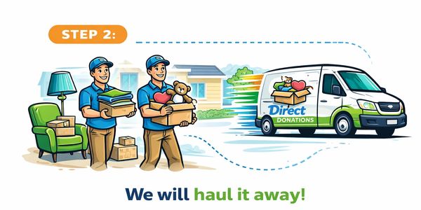 A team member will arrive at your location, collects your donated items, and hauls them away — no heavy lifting, no stress. Giving made easy.